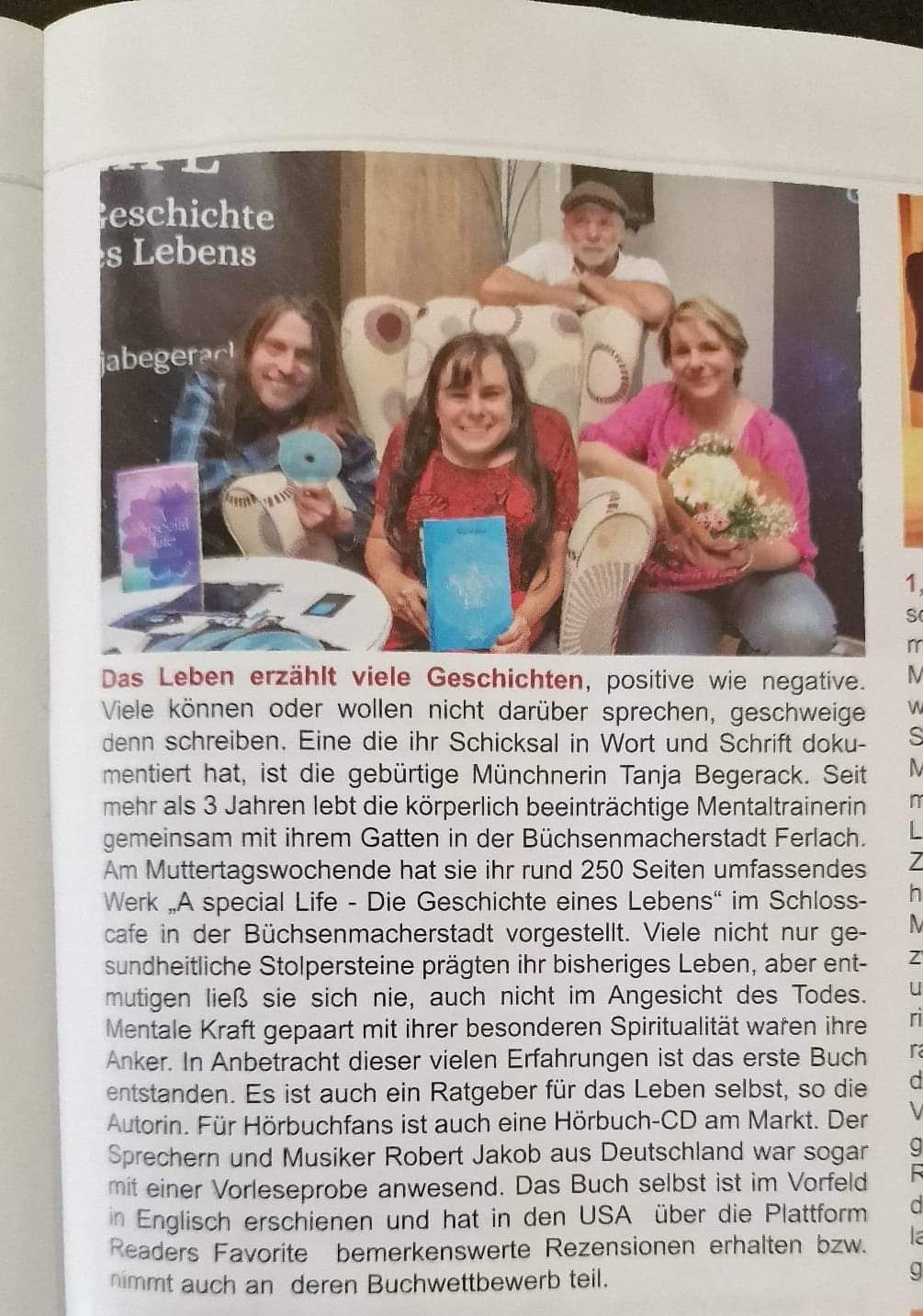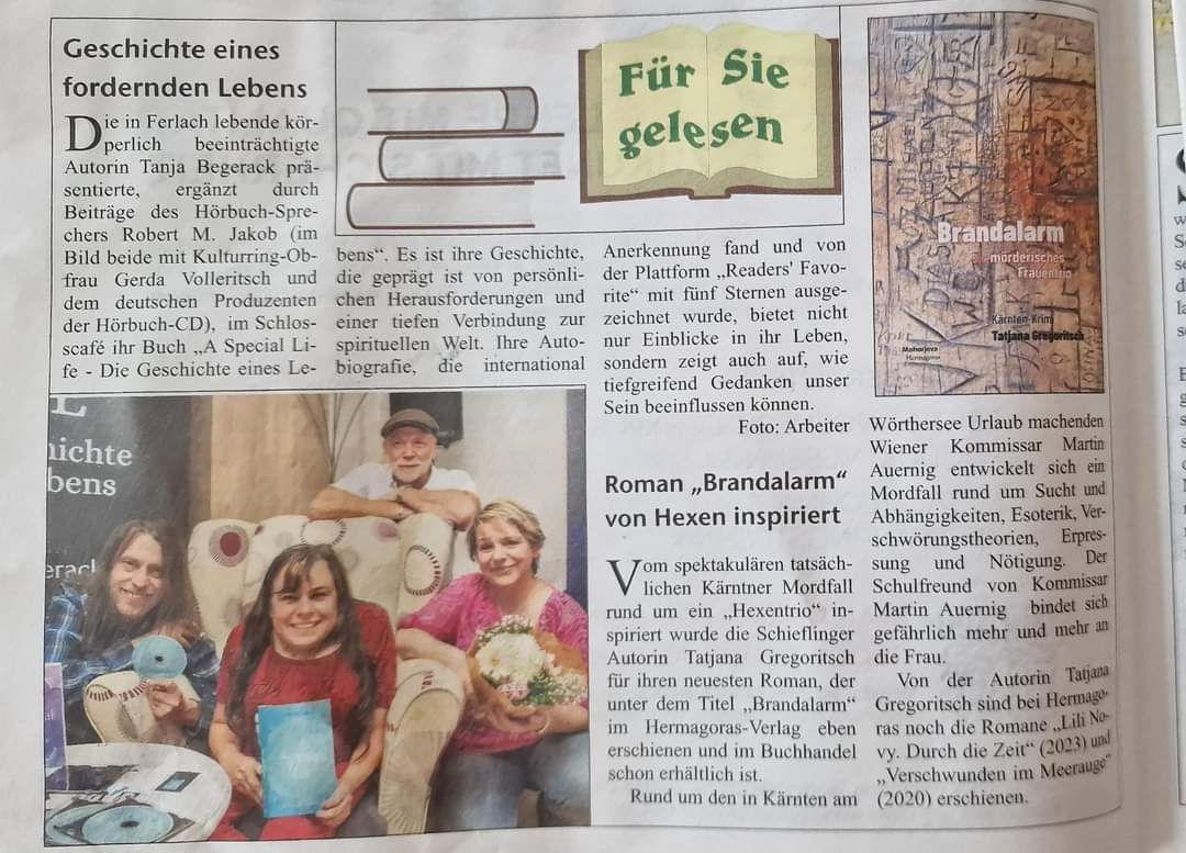 We are pleased to announce that Austria's renowned Kronenzeitung has featured Tanja Begerack, her book "A Special Life - The Story of a Life," as well as the corresponding audiobook and its narrator, Mr. Robert Manfred Maria Jakob. Being featured in one of the country's leading media outlets is an honor and reflects the interest and importance of our work. For more information about the book and audiobook, please visit our website.